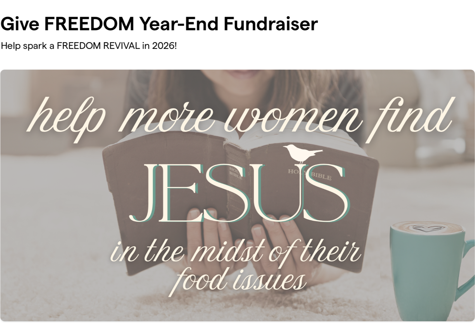 Your generosity helps us focus our time and energy on what's most important, helping women feel KNOWN and LOVED by Jesus in the midst of their food struggles.